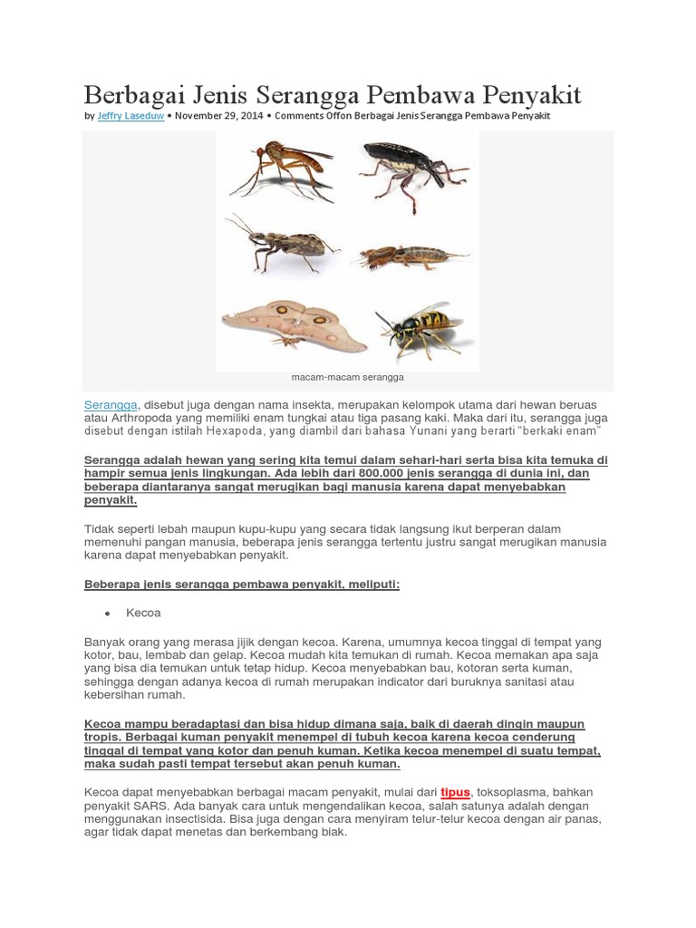 Berbagai Jenis Serangga Pembawa Penyakit Pdf