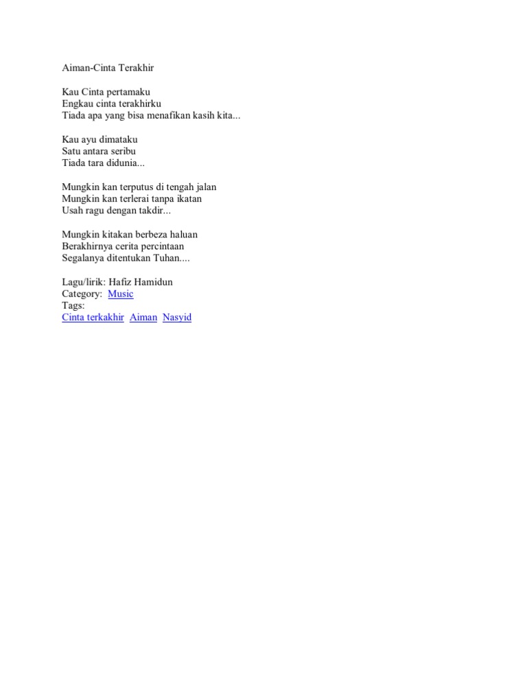 Lirik Lagu Cinta Terakhir Aiman Sidek Feat Syazmin